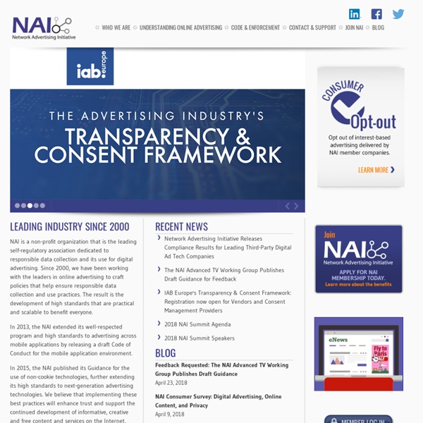 The Network Advertising Initiative Since 2000, the NAI has imposed self-regulatory standards that establish and reward responsible From that work, the NAI developed a draft code of conduct, which it put out for public comment in March ... Fetch Content